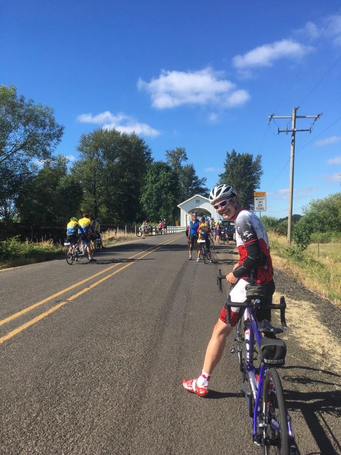 We had decided to start the first day with the shorter 35 mile ride. It took us through beautiful flat to rolling farm land and through 2 old covered bridges. The day was just beautiful, we were on the bike by 8:00 and it was mid-50s with sunny skies.