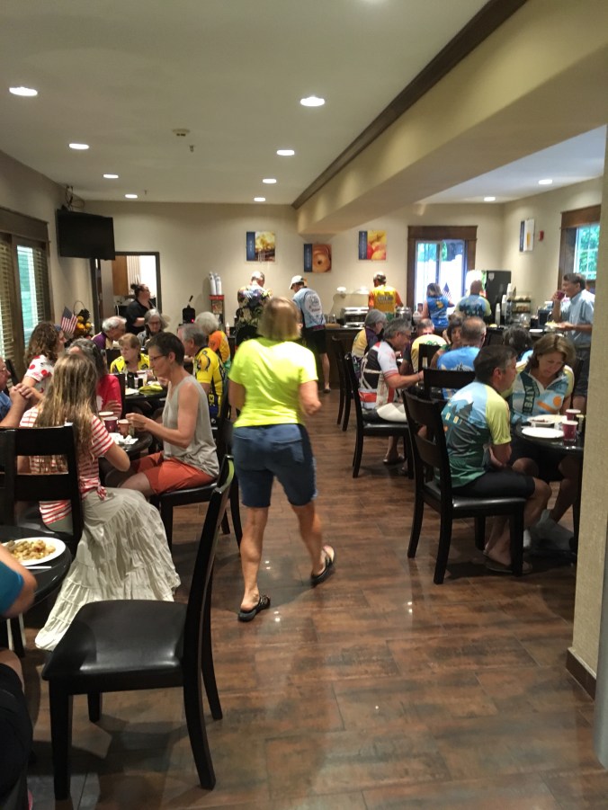 After breakfast a bunch of us decided to wait for the large tandem group from the mass start to pass our hotel and join them then. Great idea except for the the fact that the tandem organizers had changed the beginning of the route at the last minute and the route no longer went by our hotel.