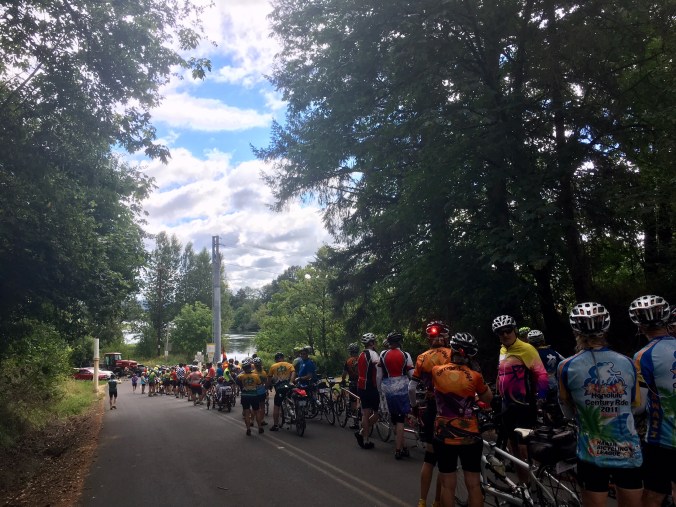 We were directed onto the ferry 25 tandems at a time. This was at the 15.5 mile point in our ride and across the the Willamette was where we would ride a 30 mile loop before returning to the ferry and the rest of the 64.5 miles and back to the hotel.