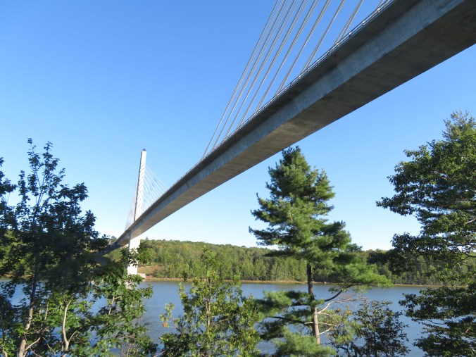 On down the road we came upon the town of Penobscot where the Penobscot Narrows Bridge is. It’s a beautiful cable bridge and you can go up to the top of the viewing area and see for miles on a clear day, which we had.