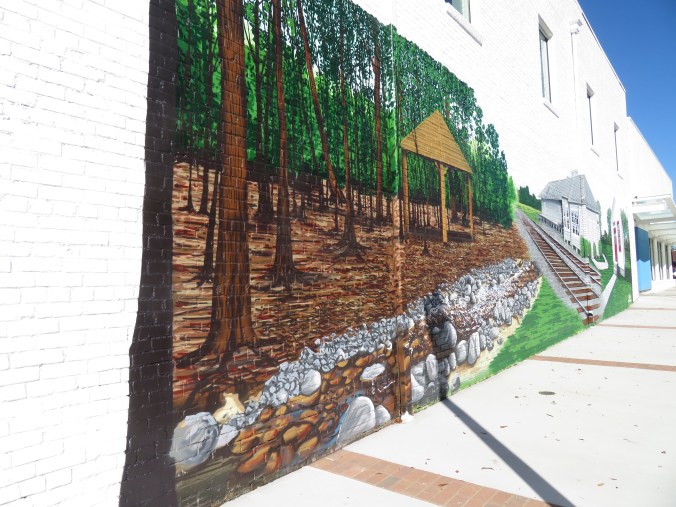 On the way back we took a little turn through town and I got a photo of a mural and of the Fainting Goat Brewery sign that happens to be right across the street from our B&B.