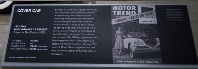 The Petersen is overwhelming and wonderful! So many one-of-a-kind cars as well as cars you won’t see anywhere else. I took over 300 photos so it will take a little while to go through them and find the ones that are worth posting. I did manage to get a fairly good shot of the Petersen Automotive Museum itself, it was a $95,000,000 renovation so it’s worth seeing. Can you believe I was able to get a shot with no traffic passing in front?