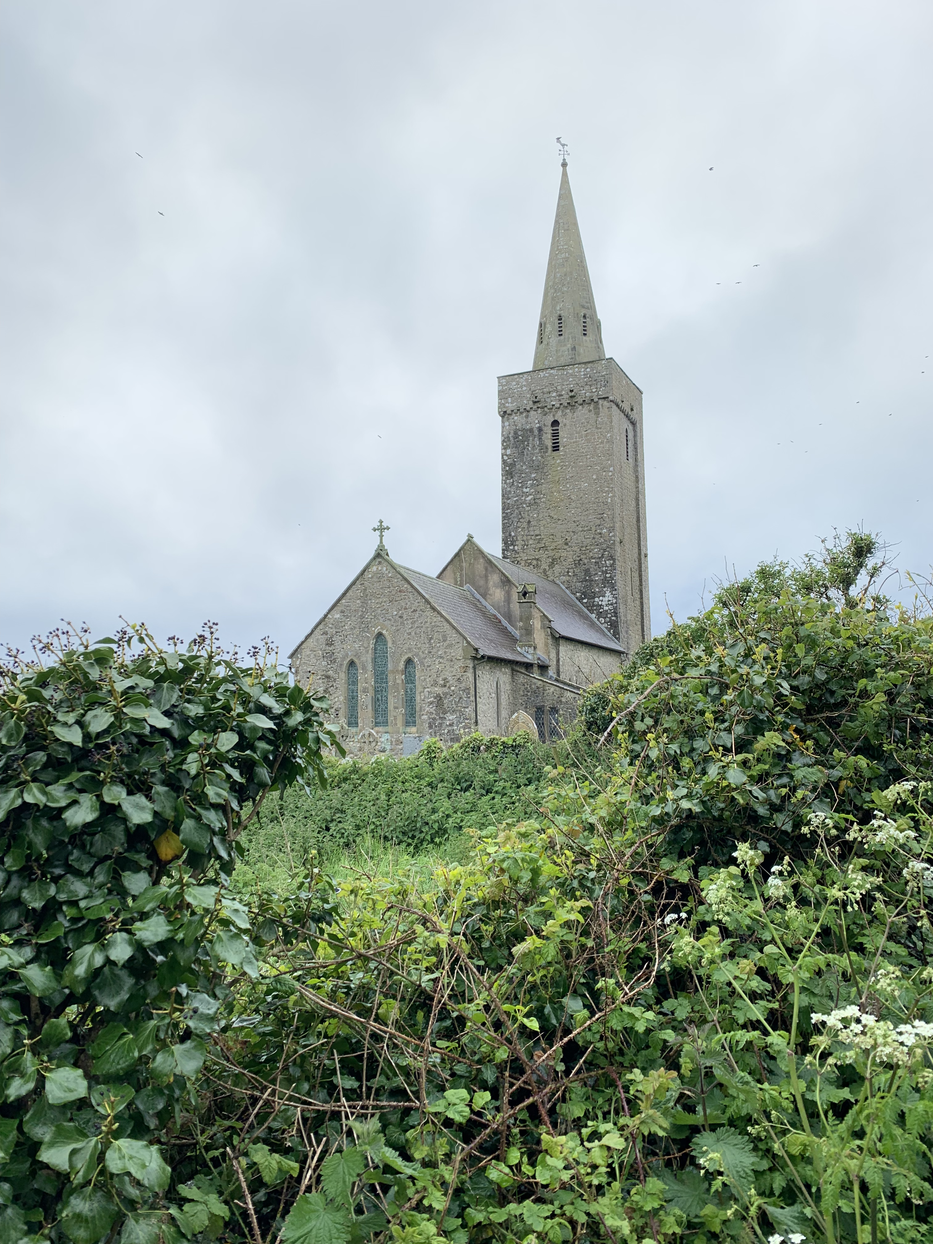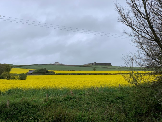 On the way to The Old Point House we were diverted onto a road headed toward a tiny hamlet with a lovely church and mustard fields near Castlemartin.