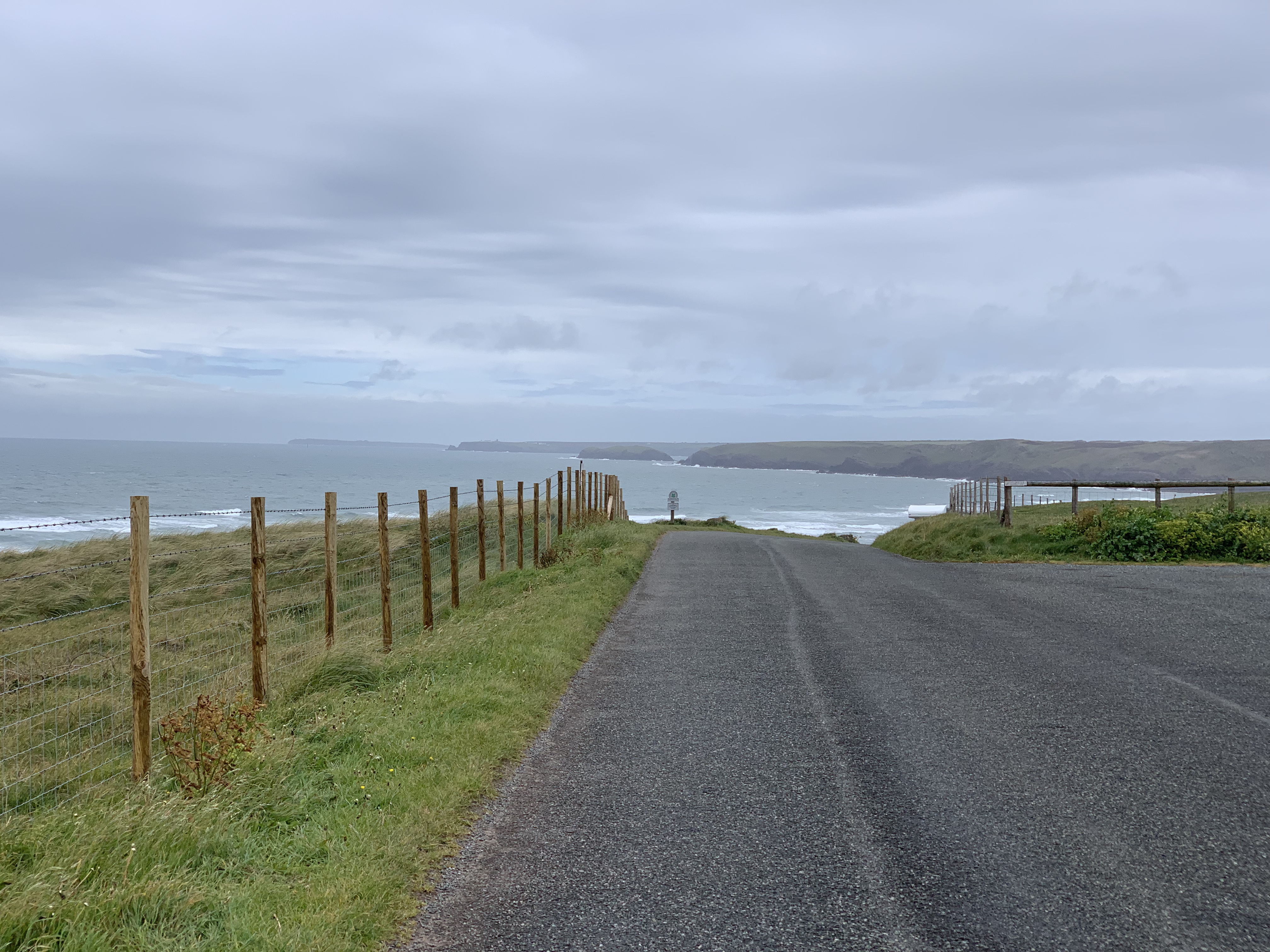 Next we came into an area called Freshwater West Beach with beautiful views overlooking the coast. There was one place where the road looked like it was completely mudded in but by the time we came out of the turn it looked better. Still plenty of wet sand across the one lane road but not too bad. The views were wonderful.