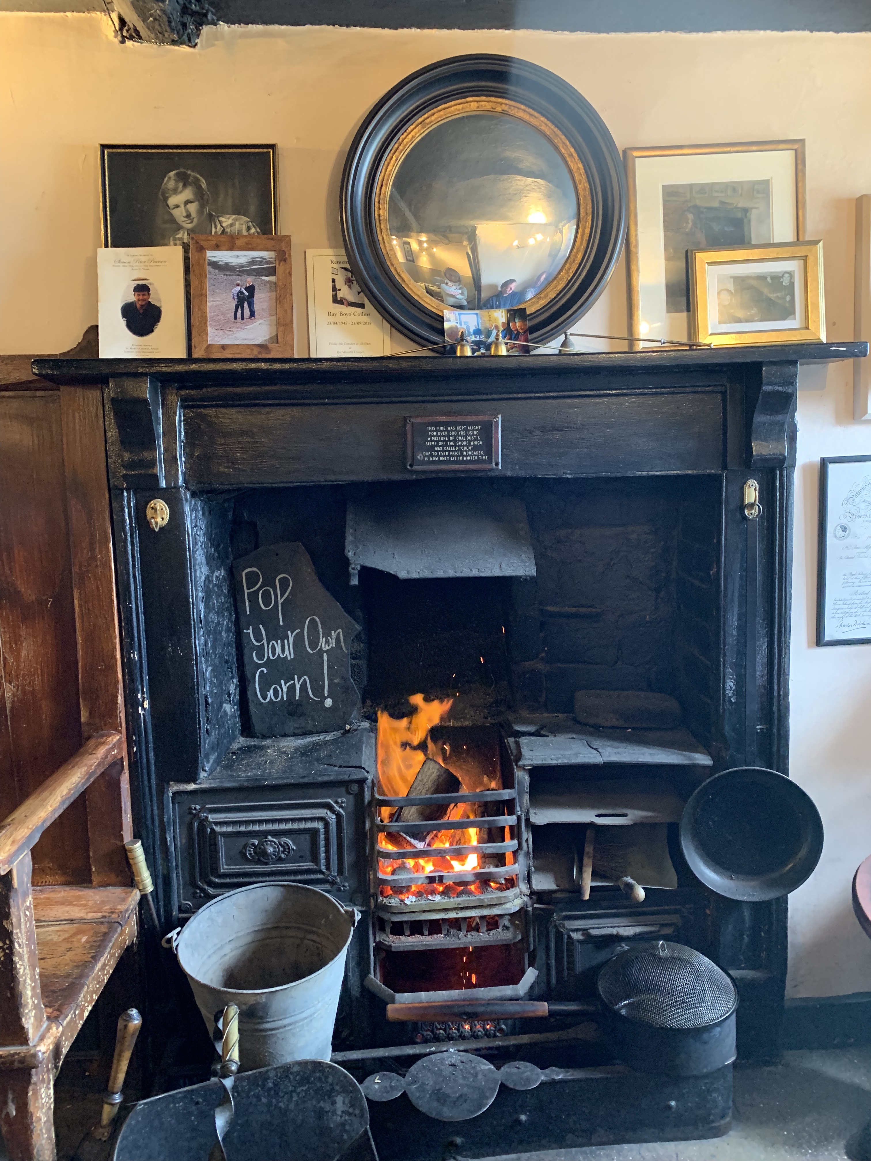 Turns out that the fireplace no longer burns constantly because of the expense, it just burns in winter, and spring apparently because it was burning today. They used a mixture of coal dust and slime off the shore which was called “culm” to keep it burning. There’s a plaque on the fireplace itself.